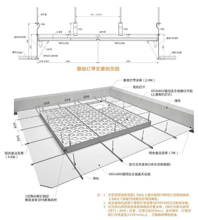 ②同根主龍骨上三角龍骨的吊件,卡向應(yīng)相反,便于安裝扣板時(shí)三角龍骨不會(huì)前后擺動(dòng)。